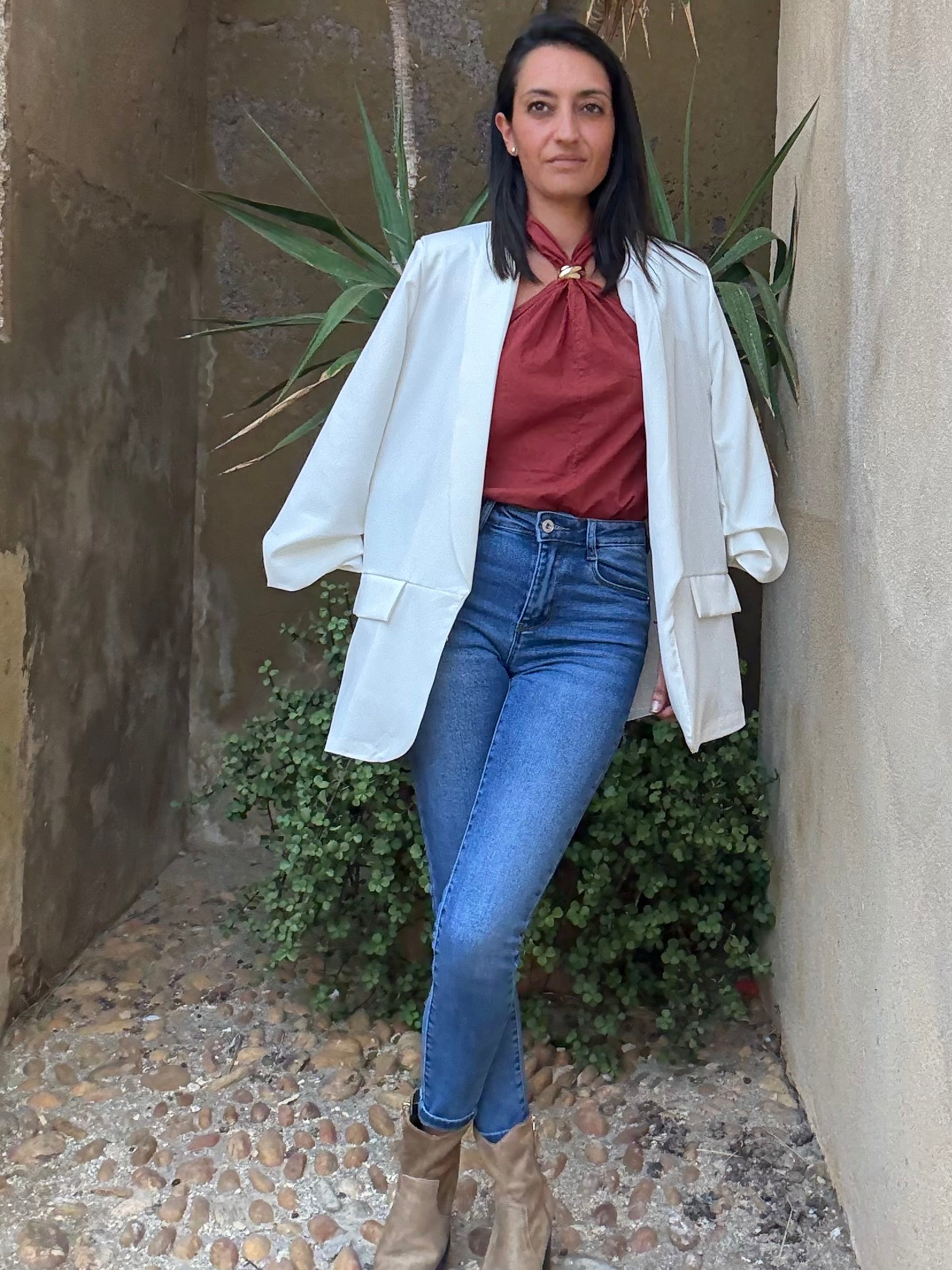 Esta blazer está diseñada para iluminar tus outfits con elegancia y presencia. Su tono blanco, solapa clásica y estructura relajada la convierten en una pieza imprescindible para eventos, reuniones o cenas sofisticadas. Combínala con tonos neutros o atrévete con un look monocromático de impacto.