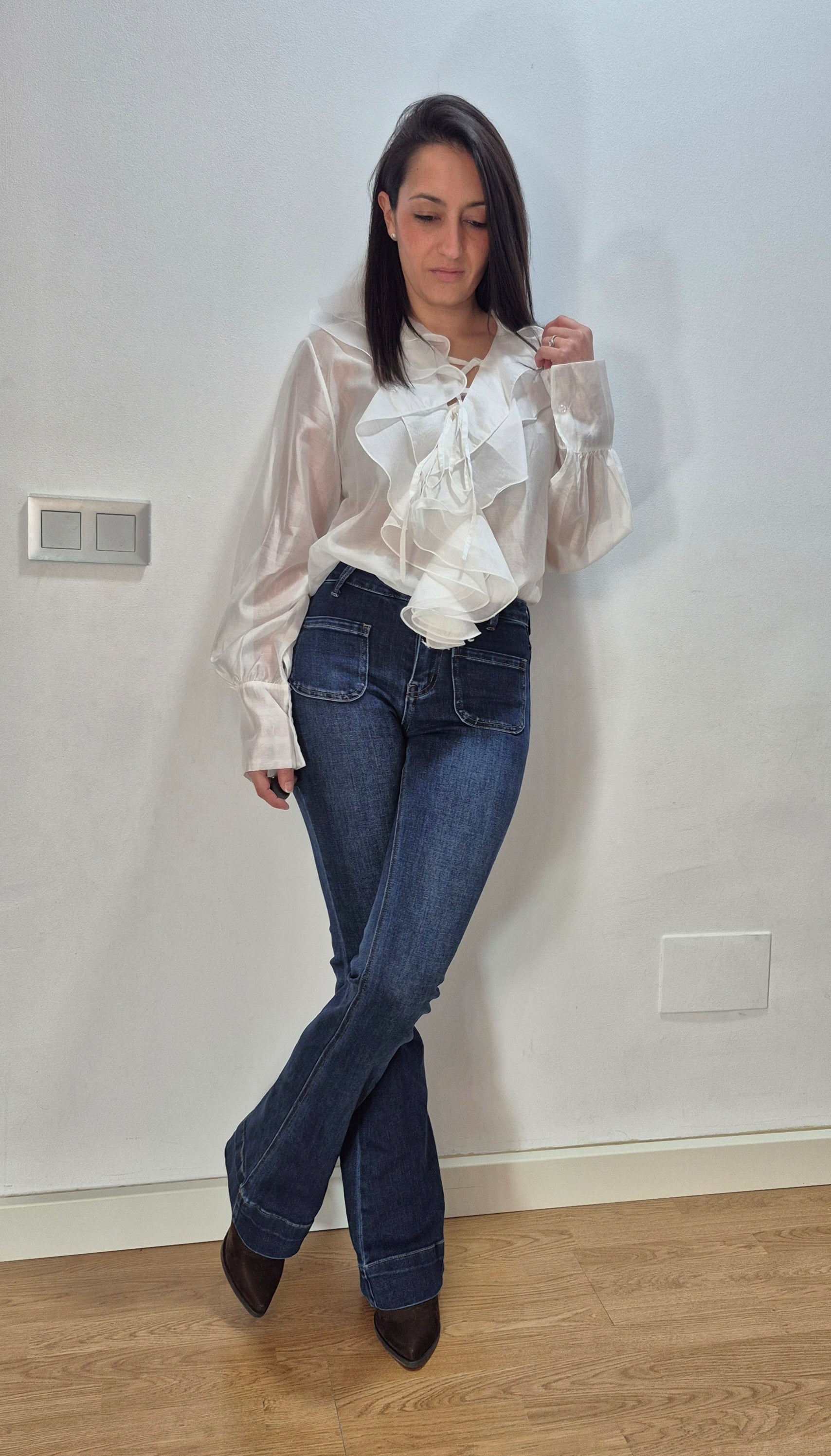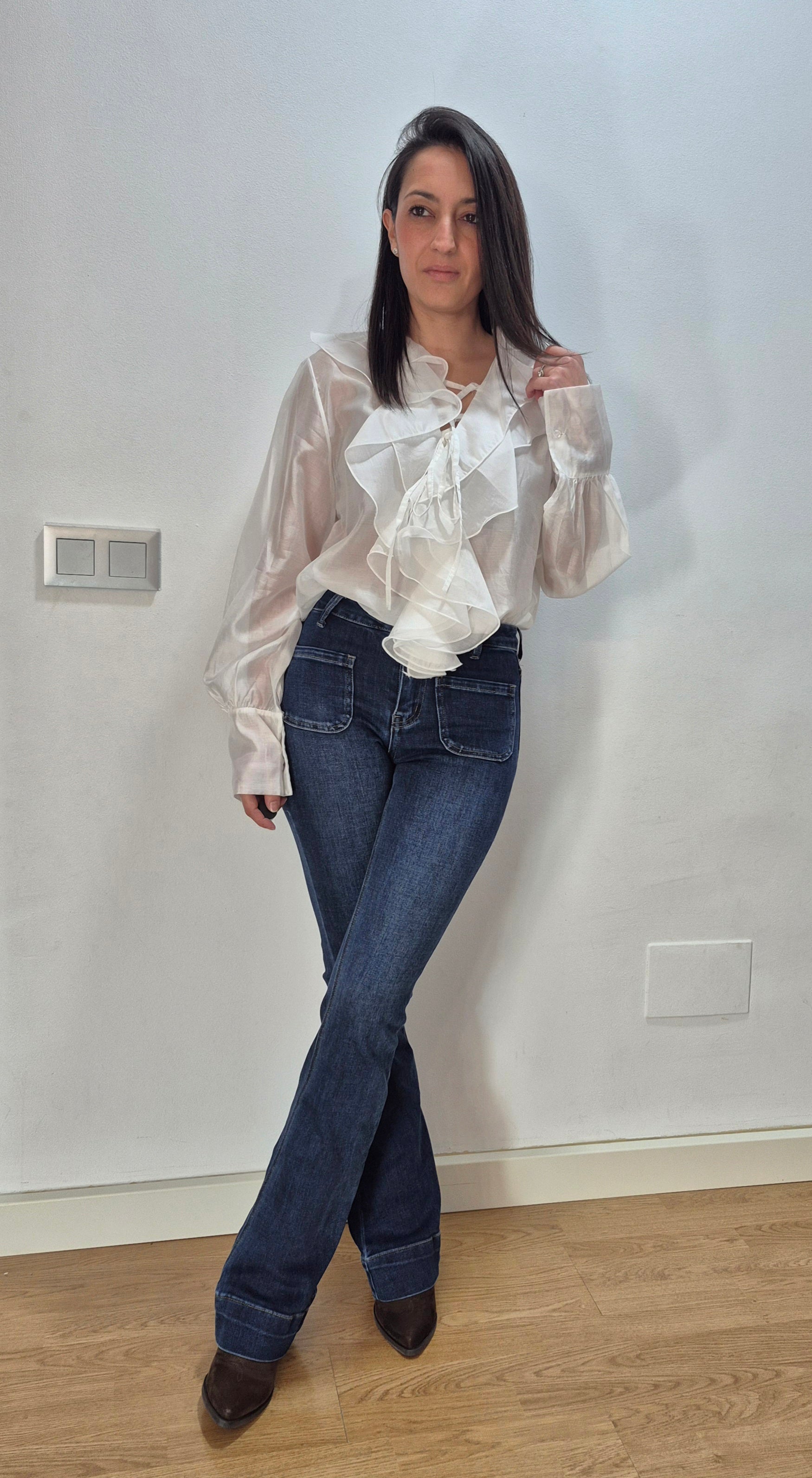 Una camisa que habla por sí sola: ligera, femenina y con volantes que hacen magia en movimiento. Perfecta para esos días en los que quieres ir arreglada sin complicarte.