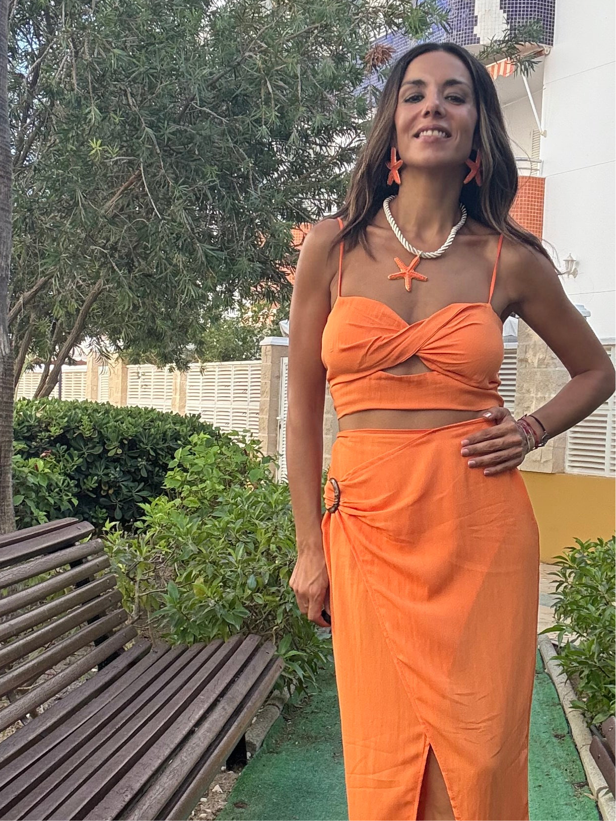 Este set de collar y pendientes es el mar convertido en joya. Un set que habla de fuerza y libertad, perfecto para las que quieren darle a su look ese toque de verano eterno