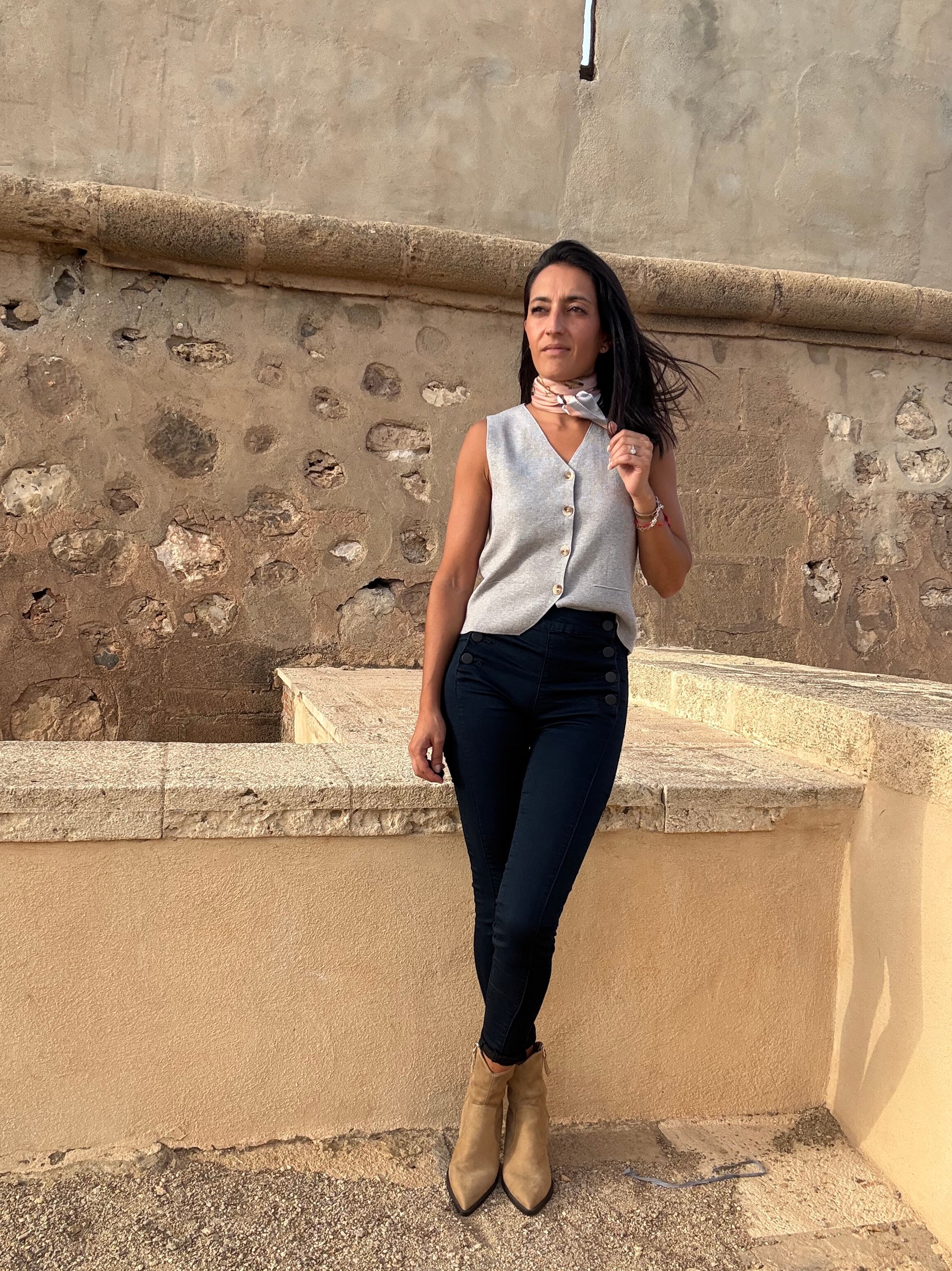 Los Jeans Scala realzan tu silueta con su tiro alto y corte ajustado. Su denim elástico en tono oscuro y los botones laterales combinan comodidad y estilo, convirtiéndose en el aliado perfecto para looks de día y de noche.