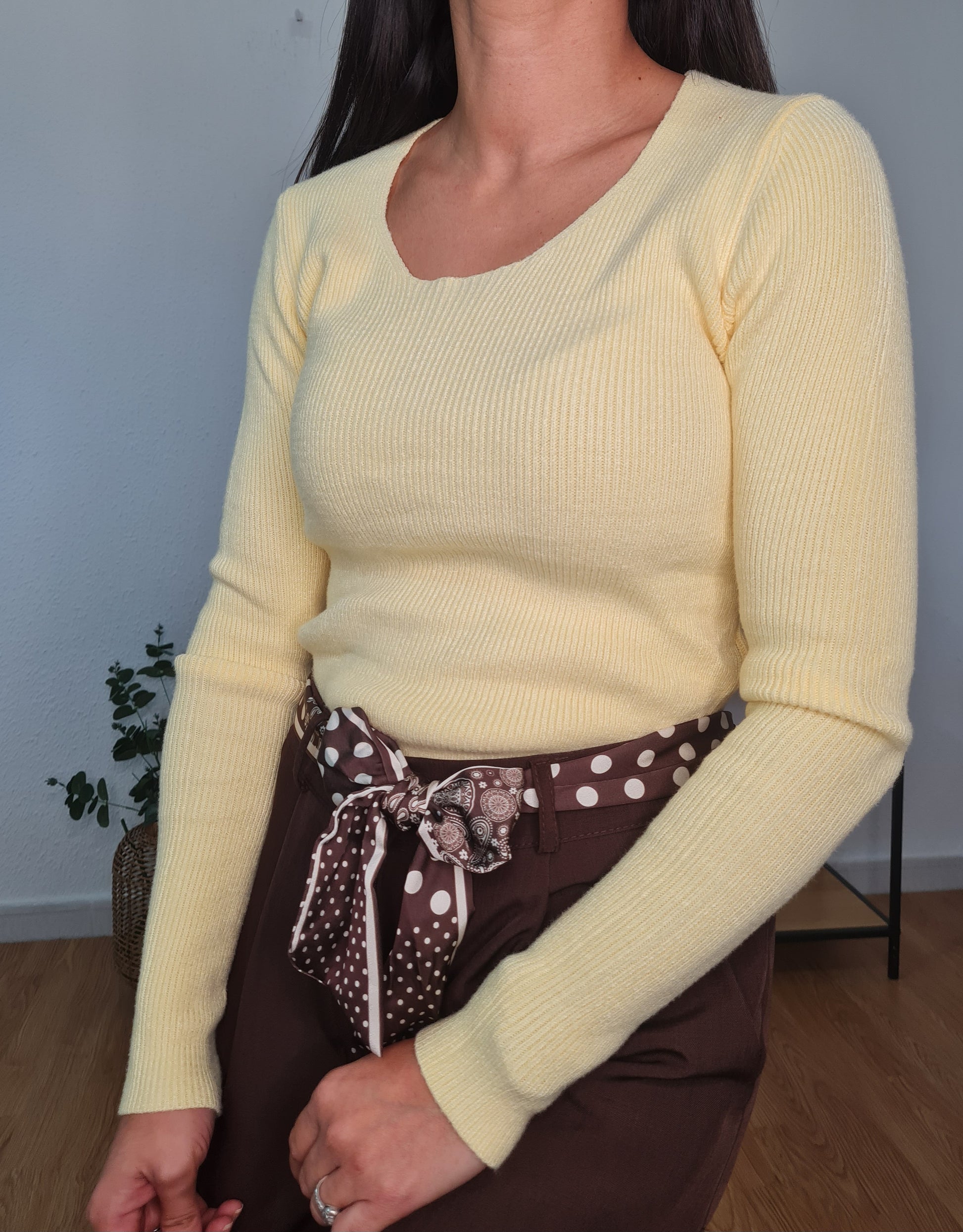 El Jersey que ilumina cualquier look con su tono vainilla suave y su tejido de punto fino. Su corte ajustado realza la silueta y lo convierte en el aliado perfecto para combinar con faldas o pantalones de talle alto. Un básico elegante y luminoso que aporta calidez sin renunciar al estilo.