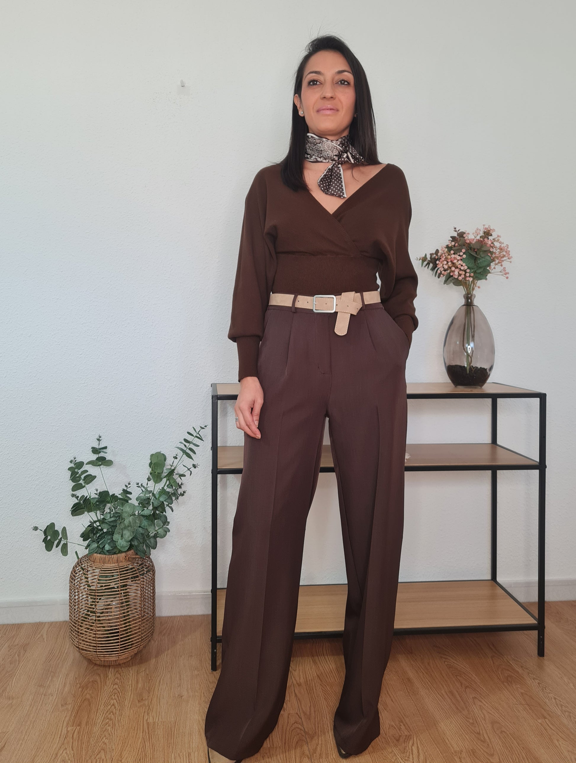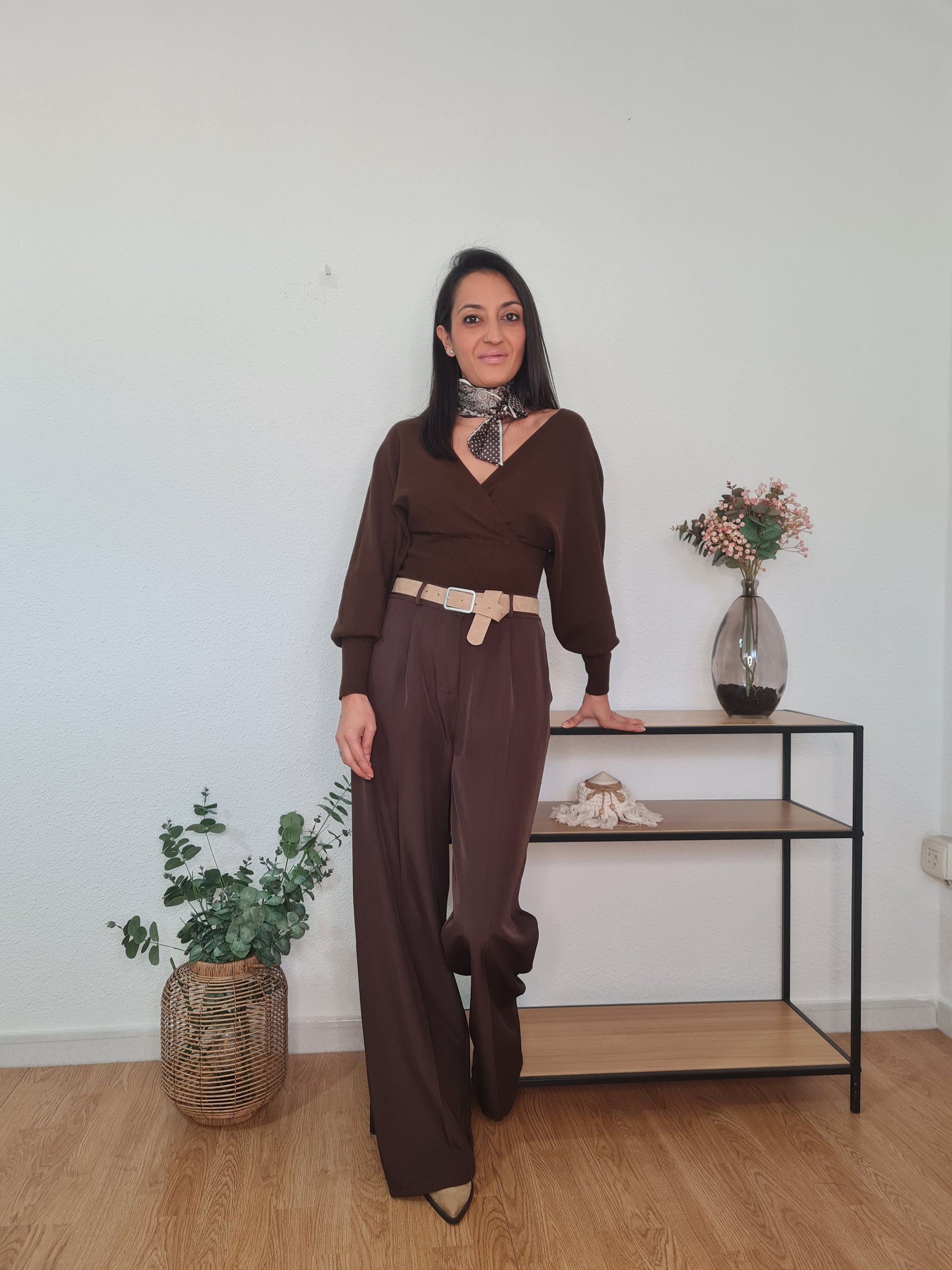 El Jersey Noisette combina el encanto de lo clásico con el confort del punto suave. Su escote cruzado y mangas abullonadas aportan un aire femenino y sofisticado. Ideal para elevar cualquier look de día o de noche con un toque cálido y elegante.