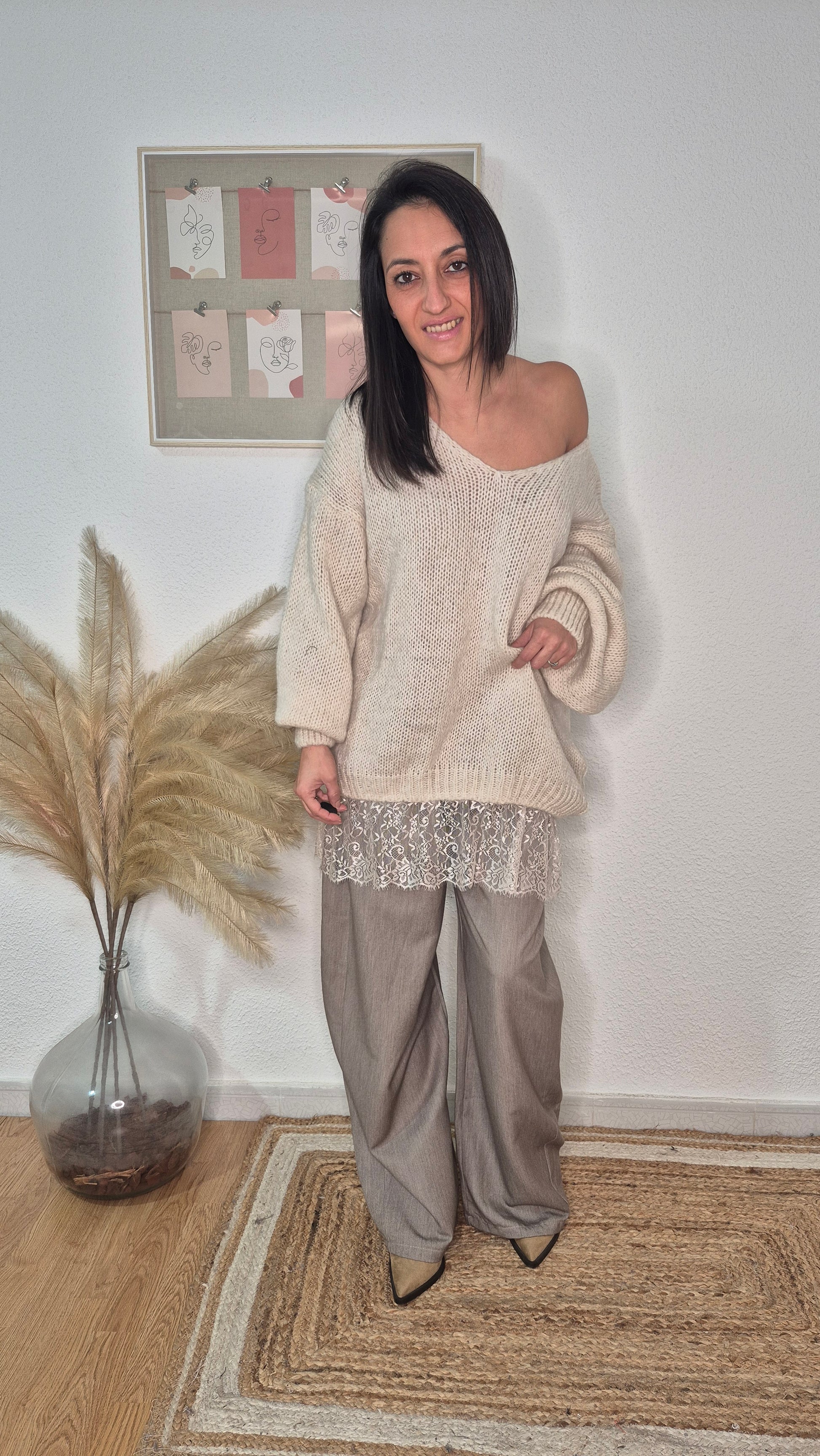 El pantalón que te hace sentir arreglada sin pensarlo. Su corte ancho, el detalle del cinturón y las pinzas crean una silueta súper favorecedora. Y lo mejor: está disponible en dos tonos que combinan con todo, negro y topo claro, para que elijas tu mood del día.