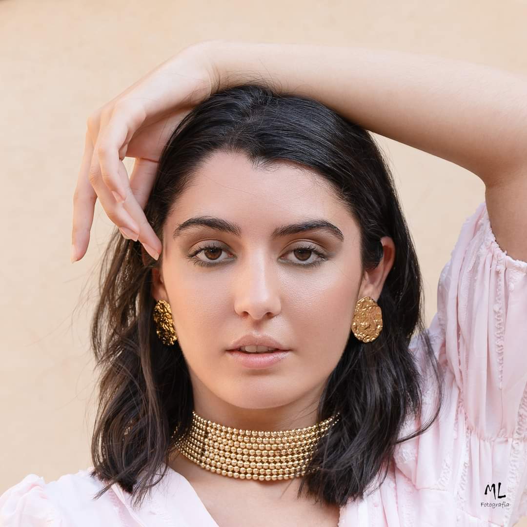 Pendientes de acero en color dorado en forma de círculo con relieve