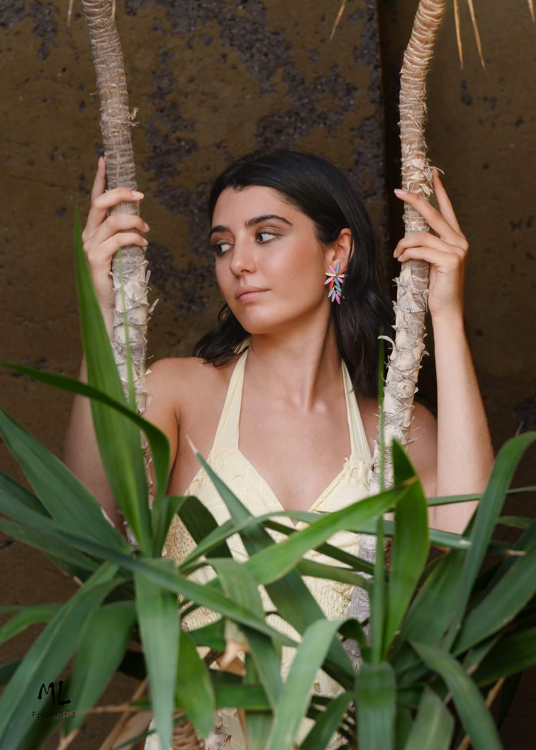 Pendientes de acero con pedrería en tonos: rosa, amarillo, naranja, turquesa,lila y azul pastel