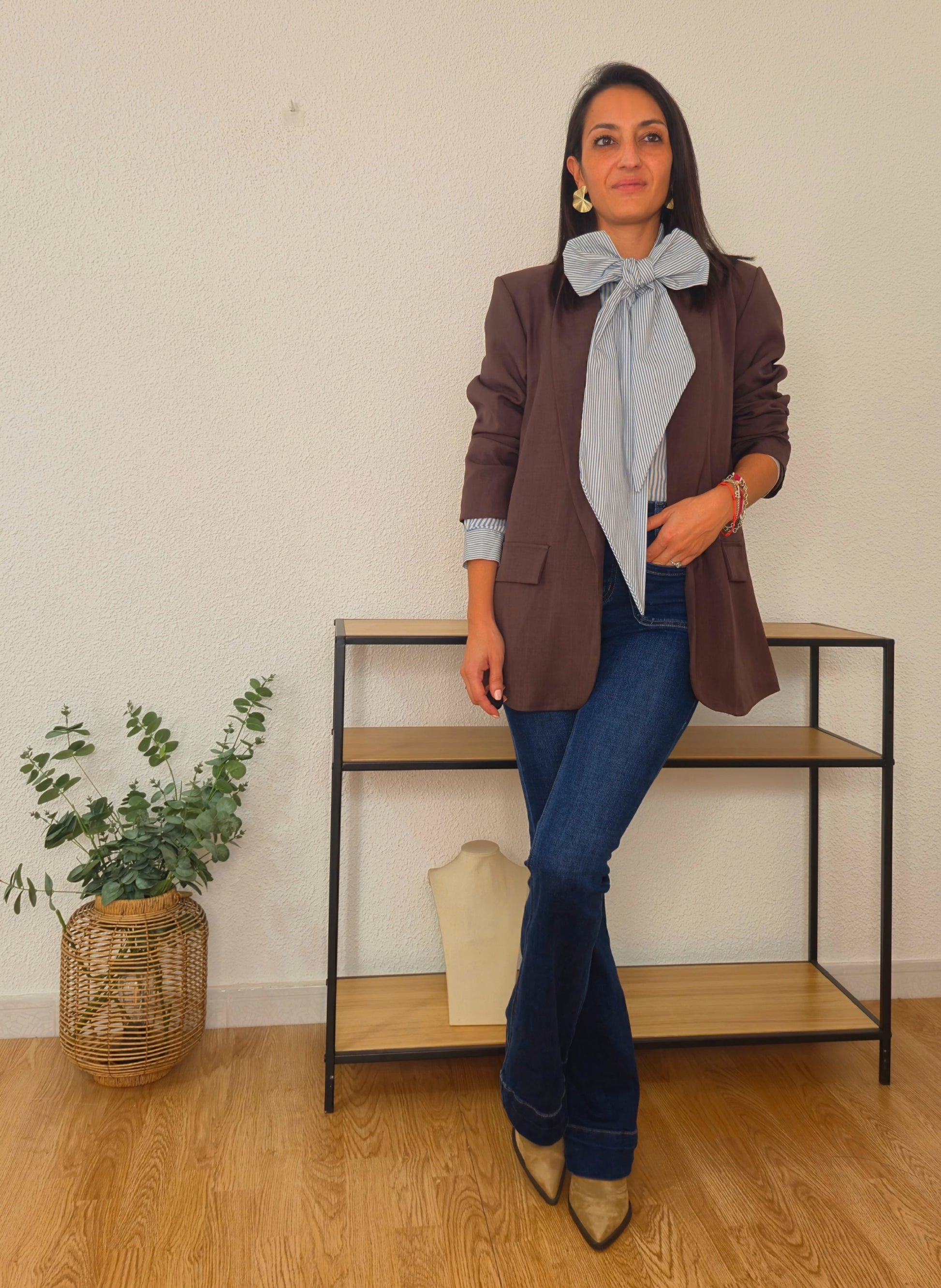 La blazer Muse es sinónimo de elegancia relajada. Su corte fluido, solapas estructuradas y tejido con caída natural crean una silueta favorecedora que eleva cualquier look.