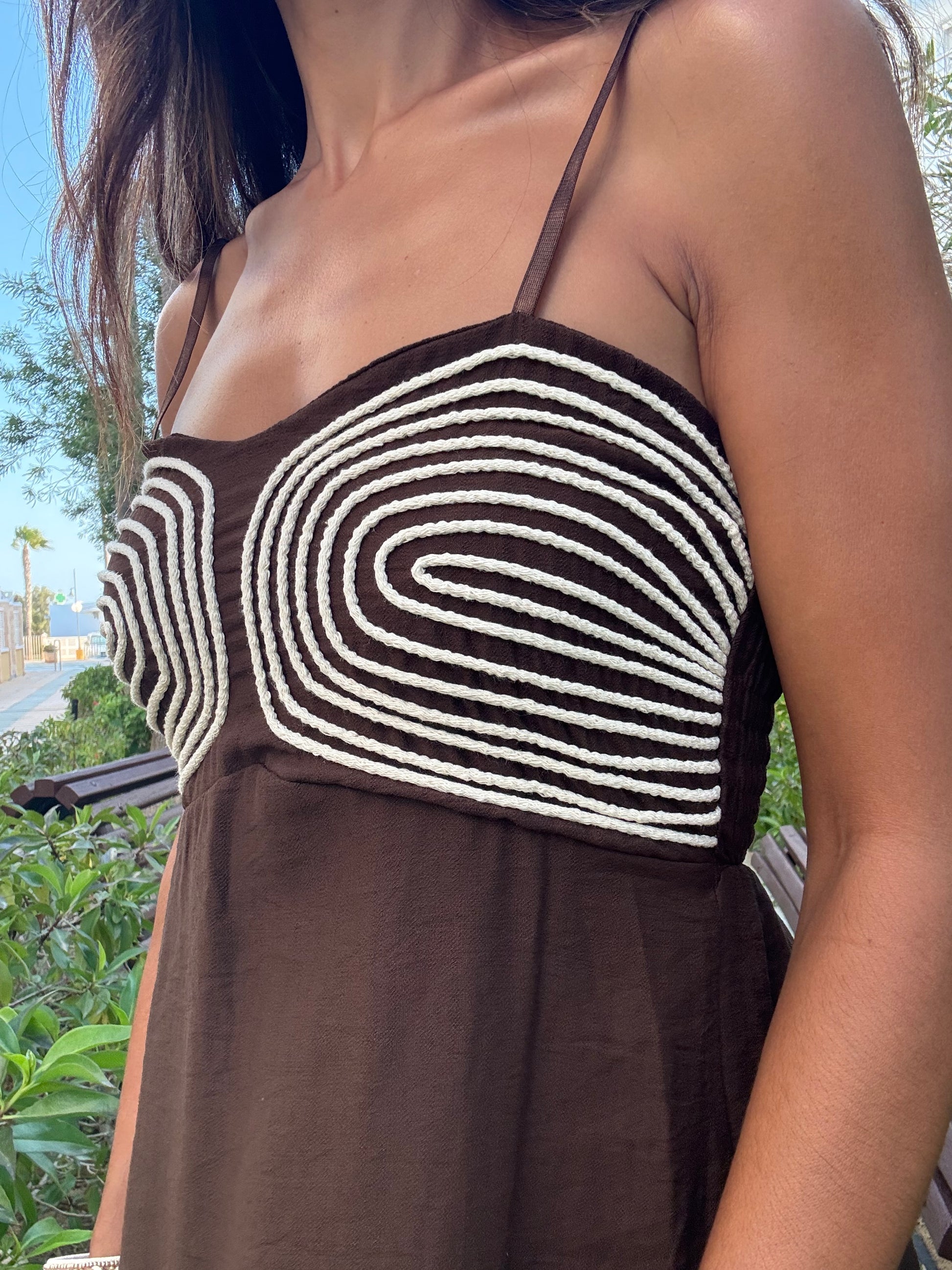 El vestido Kora combina comodidad y diseño con carácter. Su escote bordado y tejido ligero hacen que fluya con estilo en cada paso. Ideal para looks relajados con un punto original.